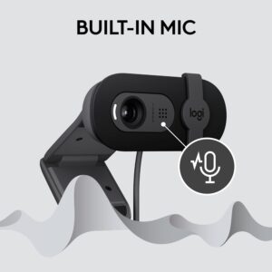 Logitech Brio 100 Full HD 1080p Webcam for Meetings, Streaming, Desktop, Laptop, PC – Built-in Mic, Shutter, USB-A, Teams, Zoom – Black
