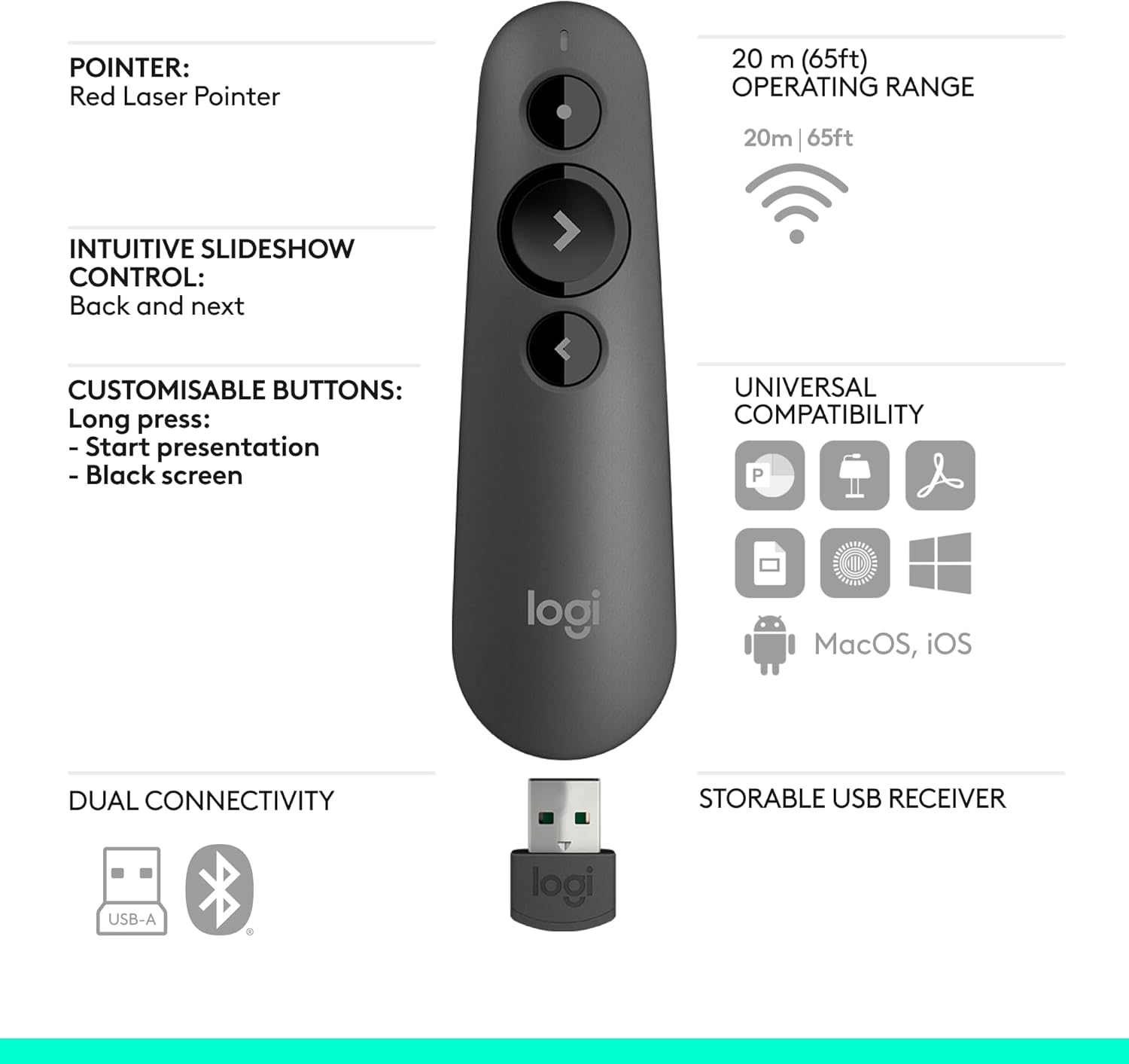 Bright red laser light – Easy to see against most backgrounds, works as a pointer clicker for presentation and clicker for powerpoint presentations