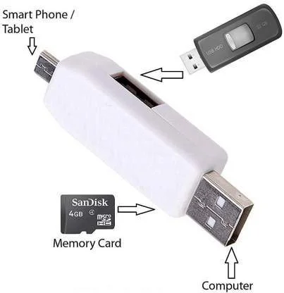 The standard USB 2.0 plug (type A) and micro USB plug (type B) combination, making the card reader compatible with all Smartphones.