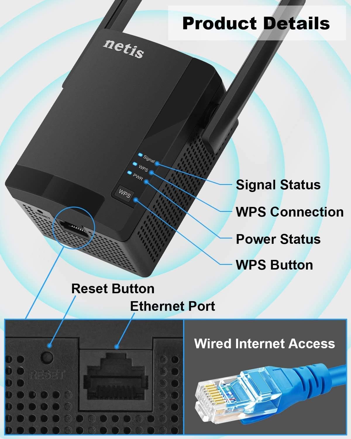 - 𝐄𝐀𝐒𝐘 𝐒𝐄𝐓 𝐔𝐏 𝐈𝐍 𝐒𝐄𝐂𝐎𝐍𝐃𝐒: Supports one-button setup; Just press WPS Button on Your Existing Router and this WiFi Network Extender to extends your network coverage easily and efficiently