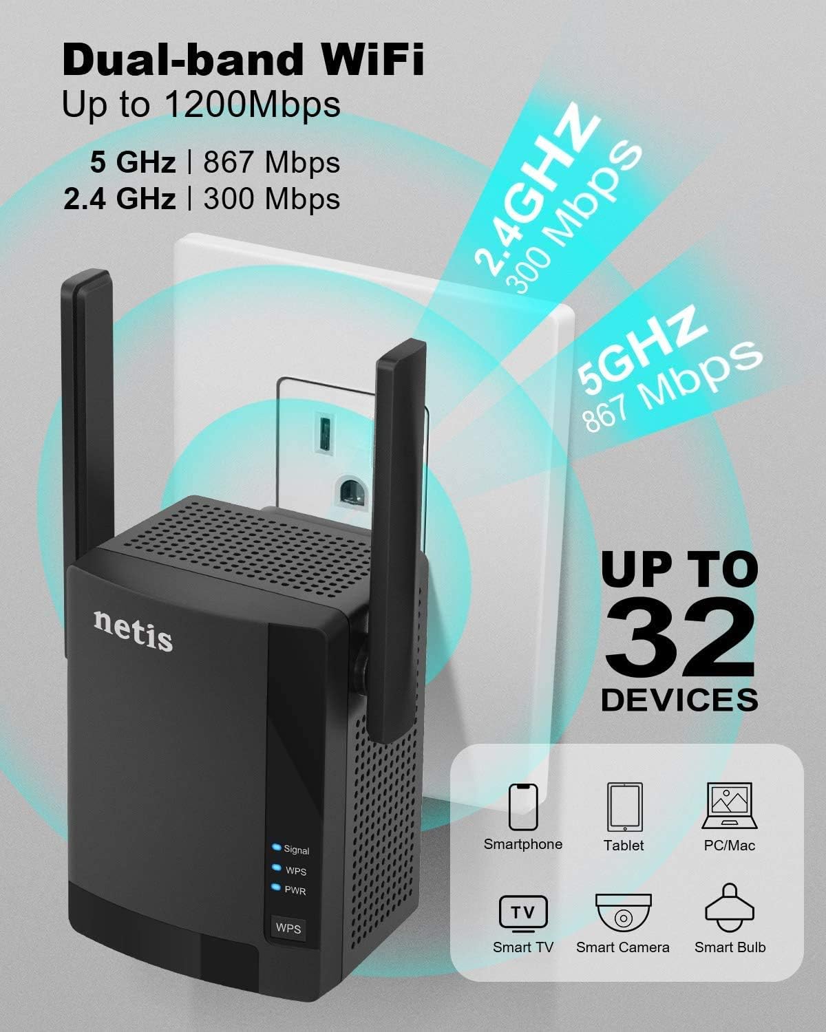 - 𝐄𝐗𝐓𝐄𝐍𝐃𝐄𝐃 𝐖𝐈𝐑𝐄𝐋𝐄𝐒𝐒 𝐂𝐎𝐕𝐄𝐑𝐀𝐆𝐄: Adds Wi-Fi Range Coverage up to 1300sqft to 2200 sqft to extend the main router wifi signals to a further range which eliminates the signal dead zone.